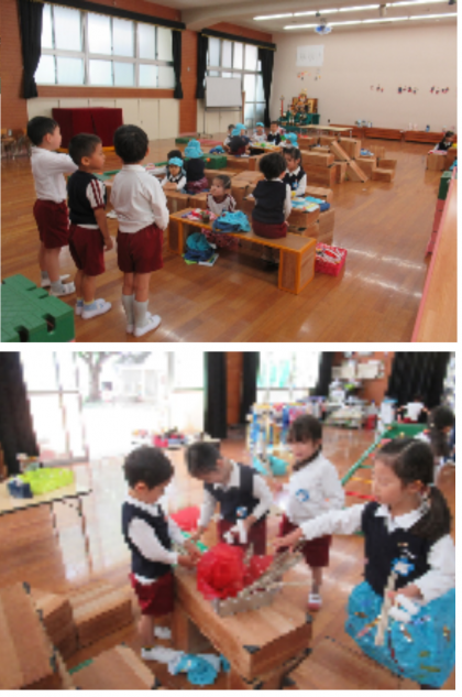 大型積み木で遊んでいます(5歳児) 公開日 2024/05/09 更新日 2024/05/09 記事 そら組さんは、何をつくるか友達と相談したり、力を合わせて大きな積み木を運んだりして、遊戯室で遊んでいます。 キャンプ場や家、ドーナツ屋さんや“アジト”などがあり、子どもたちのアイデアがたくさん詰まったステキな空間ができあがっていました。 そんなステキな空間でお弁当を食べて、とても嬉しそうな子どもたち。 キャンプ場では、食後に焼きマシュマロをする姿も見られ、とても楽しそうでした。 いいね(0)