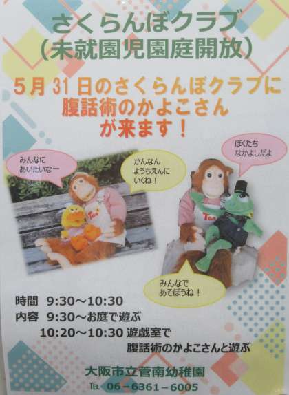 園庭で遊んだり“腹話術のかよこさん”と一緒に遊んだり、楽しいことがいっぱいです。