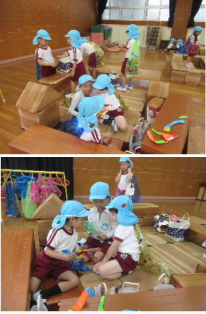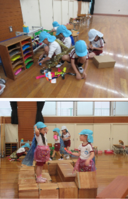 前回と同じように基地をつくっている子どももいれば、他の友達とお城や部屋をつくっている子どももいました。