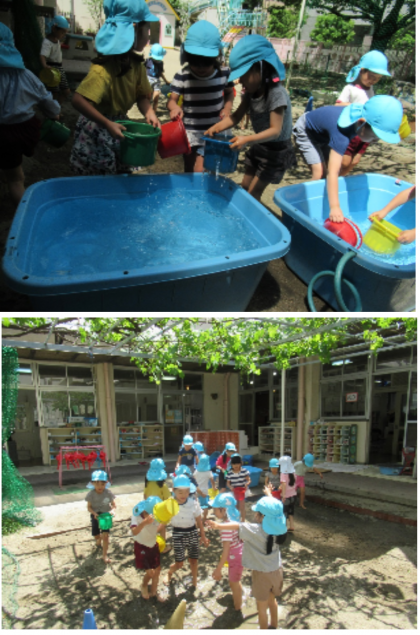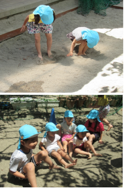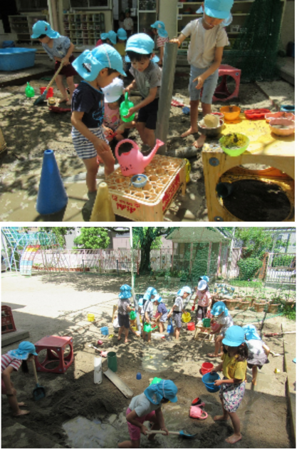 泥んこあそび(5歳児) 公開日 2024/06/03 更新日 2024/06/03 記事 今日は、そら組さんが泥んこ遊びをしました。 初めは、裸足になって砂の感触を楽しんでいた子どもたち。 砂場に水を入れると、水の冷たさや、砂とは違う泥の感触も感じながら、泥んこ遊びを楽しんでいました。 いいね(0)