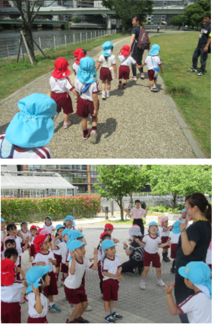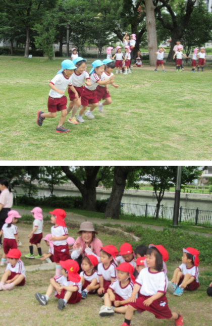 中之島公園では、体操をしたり、かけっこをしたりして遊びました。