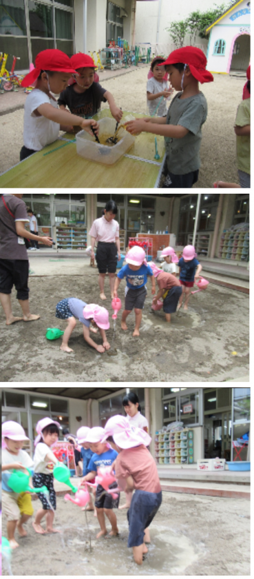 今日も楽しい水あそび♪ 公開日 2024/06/13 更新日 2024/06/13 記事 昨日の水遊びがとっても楽しかった子どもたち。 「今日もお外行こう!」「どろんこしよう!」と、朝からとても楽しみにしていました。 それぞれに好きな遊びを見つけ、今日も存分に水遊びを楽しんでいました! いいね(0)