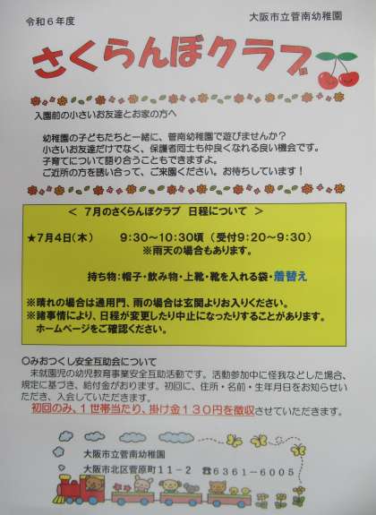 さくらんぼクラブ・幼稚園説明会 お知らせ