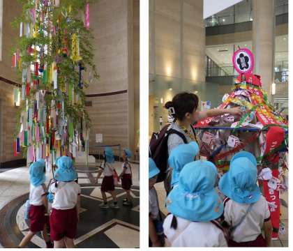 『七夕の願い』(5歳児) 公開日 2024/06/25 更新日 2024/06/25 記事 今日は、そら組さんが大阪取引所へ行ってきました。 先日お家の方と一緒に書いた短冊や、キテミテ中之島の“さかな”が飾られていました。 大きな笹の中に自分の短冊を見つけると、とても嬉しそうでした。 もも組さん、あか組さんの短冊も飾られています。 7月7日の七夕までなので、ぜひ、見に行ってみてくださいね。 いいね(0)