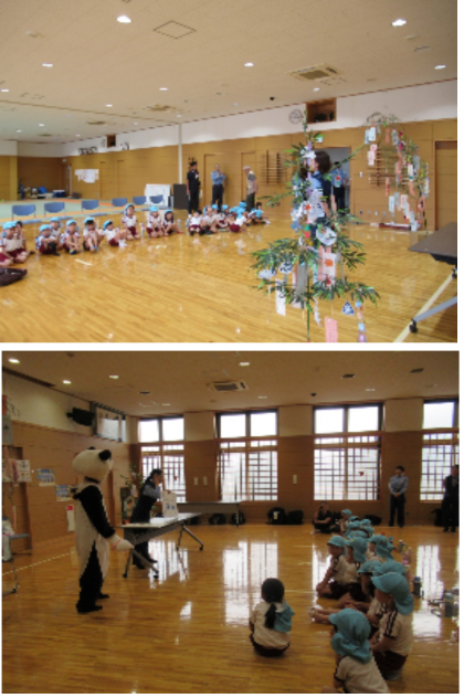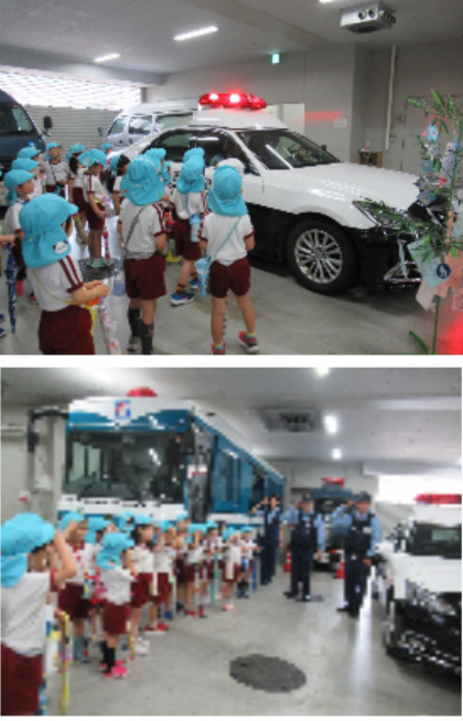 おまわりさん、ありがとう! 公開日 2024/07/02 更新日 2024/07/02 記事 今日は、年長児が天満警察へ行ってきました。 『こわいひとがいなくなりますように』『いつもまもってくれてありがとう』など、お願い事やおまわりさんへのメッセージを書いた短冊を、七夕の笹に飾らせていただきました。 クイズをしながら交通安全について考えたり、パトカーを見せてもらったりして、とても楽しかったようです。 いいね(0)
