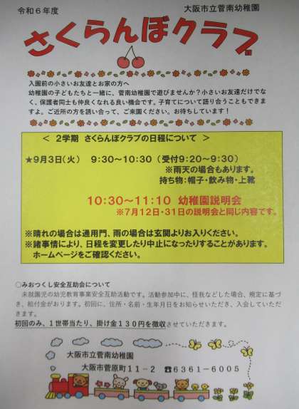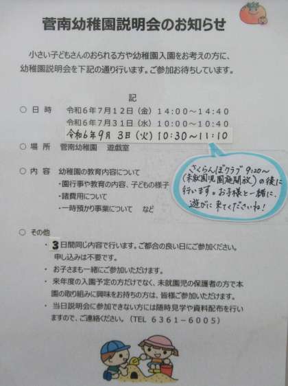 さくらんぼクラブ・幼稚園説明会 お知らせ