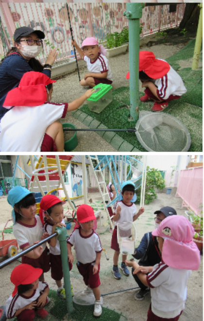 子どもたちが保育室に戻る頃には、セミも木に帰してあげます。