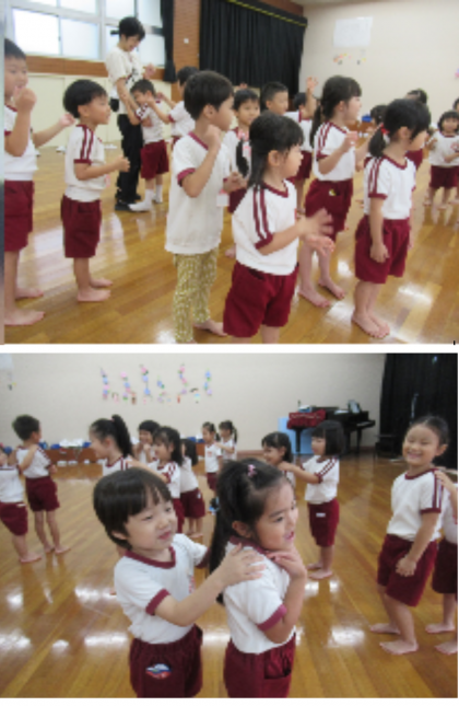 お遊戯室で遊びました 公開日 2024/08/29 更新日 2024/08/29 記事 今日は、3クラス一緒に、遊戯室で遊びました。 年長児がピアノのリズムに合わせてしっかりと体を動かしているのを見て、年中児、年少児も一生懸命真似をしたり、体を動かすことを楽しんだりしていました。 違うクラスの友達と二人組になって、なかよし遊びもしました。 歌に合わせて顔を見合わせ、にこっと笑顔の子どもたちでした。 いいね(0)