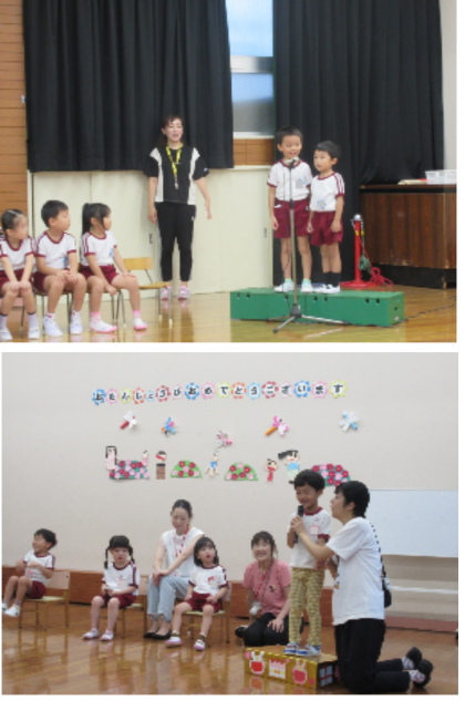 9月誕生会 公開日 2024/09/04 更新日 2024/09/04 記事 今日は、誕生日のお友達をみんなでお祝いしました。 少し緊張している誕生児も、お家の人や友達みんなに温かく見守られながら、自己紹介をしたり、好きな遊びを見せてくれたりしました。 みんなでお祝いの歌を歌ったり、玉入れをしたりして、楽しい誕生会になりました。 いいね(0)