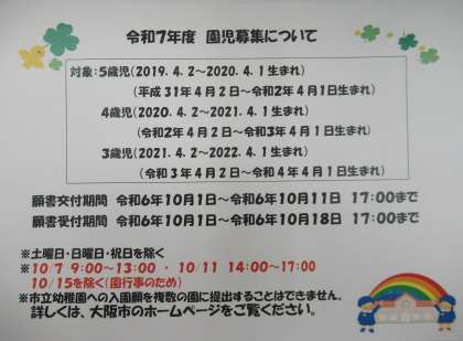 【令和7年度 大阪市立幼稚園 入園願書について】