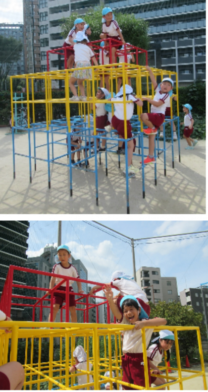 「ここ、めっちゃ広いから鬼ごっこしよう!」「ジャングルジム、上までのぼれるよ!」など、まだまだ元気いっぱい!!