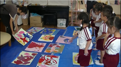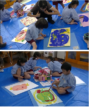 絵をかきました(4歳児) 公開日 2024/10/16 更新日 2024/10/16 記事 「かけっこしたね」「お家の人と“お寿司”運んだ!」「かんなんレンジャーが来たよ!!」など、運動会のことを思い出しながら、絵の具で絵をかきました。 子どもたちの絵には、大好きな友達や、レインボージンベイザメ、かんなんレンジャーなどが出てきて、思い思いに楽しかったことを表現していました。 友達の絵やお話にも興味津々で、みんなで見合いっこしていました。 いいね(0)