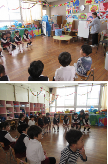 子どもたちは真剣にお話を聞いて、手洗い、うがいの大切さを再確認していました。