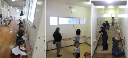「菅南幼稚園、おめでとう!」「いつもありがとう!」の気持ちを込めて、子どもたち、お家の方々みんなで大掃除をしました。
