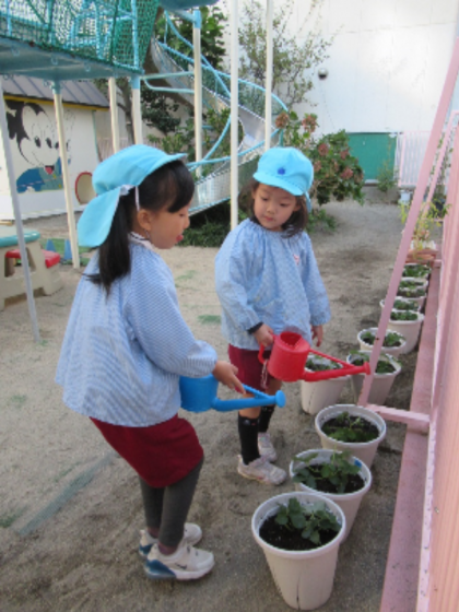 イチゴの苗を植えました(5歳児) 公開日 2024/11/21 更新日 2024/11/21 記事 そら組さんが、イチゴの苗を植えました。 植木鉢に土を入れ、苗をそっとポットから出して、大事に植えている姿が見られました。 みんなが1年生になる頃には、かわいい花が咲いているかな? 生長を楽しみながら、大切に育てましょうね! いいね(0)