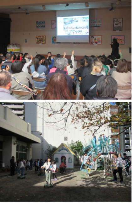 それぞれの年代を写真で振り返り、みんなで懐かしんだり、子どもたちは園庭で遊んだりしました。