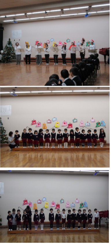 楽しい雰囲気の中、あか組、もも組がいつも歌っている歌を歌ったり、そら組が合奏を聞かせてくれたりしました。
