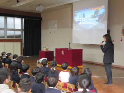 始業式では、冬休みの話を聞いたり、交通安全についてみんなで考えたりしました。