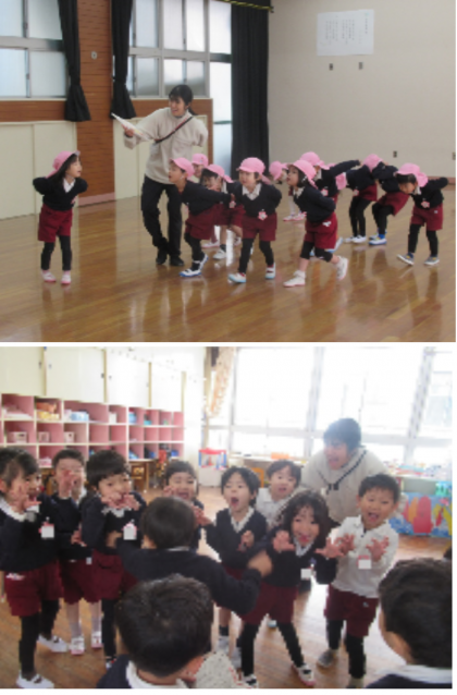 表現遊び 公開日 2025/01/21 更新日 2025/01/21 記事 子どもたちは、大好きな絵本を読んで、毎日表現遊びをしています。 先生や友達と一緒に会話のやりとりをしたり、その時の気持ちや表情、動きなどを考えたりしながら、登場人物になりきって表現することを楽しんでいます。 「また明日もしよう!」と、お話の続きをとても楽しみにしている子どもたちです。 いいね(0)
