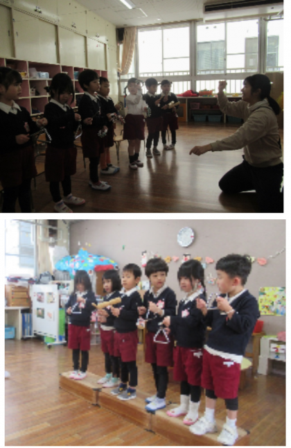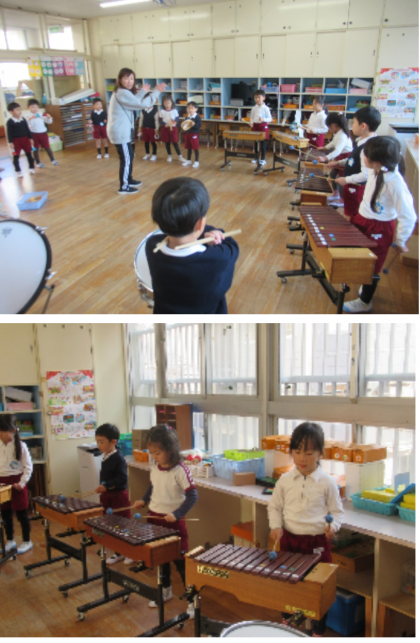 楽器遊び 公開日 2025/01/22 更新日 2025/01/22 記事 子どもたちは、楽器遊びをして遊んでいます。 好きな曲に合わせて友達と一緒に楽器を鳴らしたり、お客さんになって友達の“演奏会”を応援したりする姿が見られます。 いろいろな楽器に触れ、今では、曲や友達の音をよく聞いて、合わせながら鳴らすことも楽しんでいます。 いいね(0)
