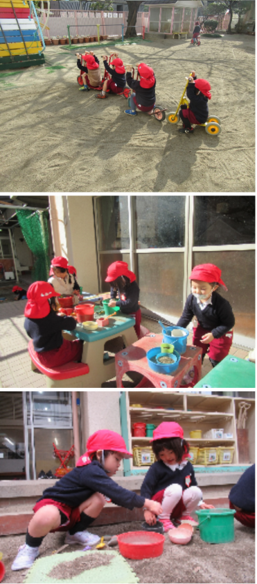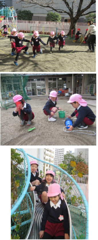 友達や先生と一緒に、毎日園庭で元気いっぱい遊んでいます。