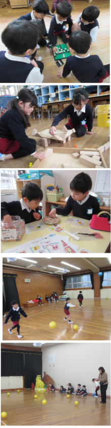おへやでは・・・ 公開日 2025/02/13 更新日 2025/02/13 記事 室内での遊びの様子です。 5歳児は、ルールのあるゲームや、指先を使って模様をつくるような遊びもしています。 外で遊ぶのが大好きな子どもたちですが、遊戯室でも体を動かして遊んでいます。 みんなで走ったり、律動をしたり、5歳児はボール遊びもしたりして、体がポカポカになっています(^^♪ いいね(0)