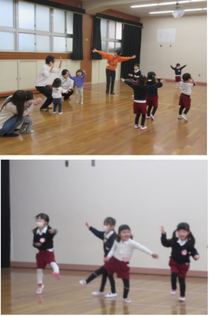 もも組さんが受付をし、一緒に遊具で遊んだり、『どうぶつたいそう』をしたりしました。
