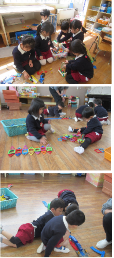 今日から年長さんがお休みで少し寂しくなりましたが、そら組のお部屋を借りてお弁当を食べたり、2階の部屋でもも組とあか組が一緒に遊んだりして過ごしました。
