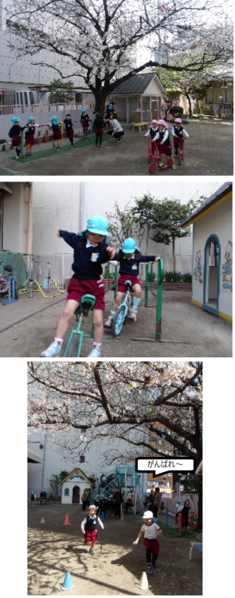 園庭では、かけっこをしたり、砂場で遊んだり、スケーターに乗ったり・・・友達と一緒に好きな遊びを楽しんでいました。