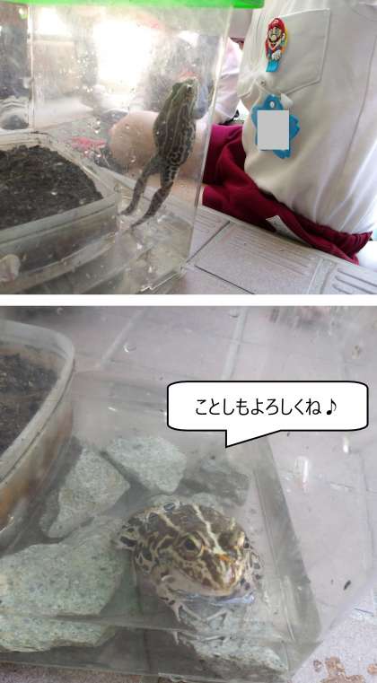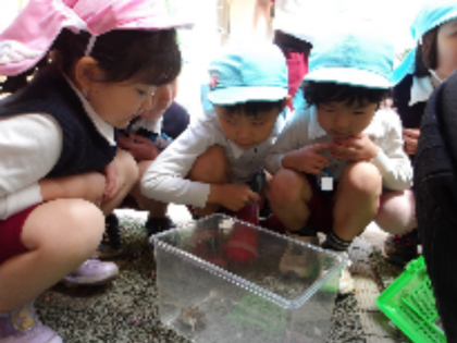 おはよ〜 公開日 2025/04/21 更新日 2025/04/21 記事 あたたかくなって、カエルも目を覚ましました。 土の中から出てくる様子に、子どもたちは興味津々で、観察していました。 飼育ケースの中からぴょーん!と跳び出てきたカエルに、大騒ぎの子どもたちでした(^^♪ いいね(0)
