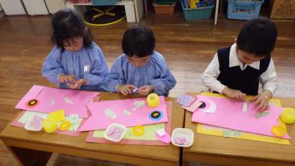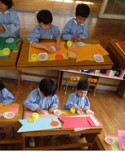 すてきなこいのぼり(4歳児) 公開日 2025/04/22 更新日 2025/04/22 記事 2階の保育室から見えるこいのぼりが大好きなもも組の子どもたち。今日は自分たちのこいのぼりを作りました。先生の話を聞いて集中して作っていましたよ。自分のこいのぼりを「わぁ、きれい!」と嬉しそうに眺めたり、「わたしのこいのぼりおしゃべりしてるんだよ」と楽しそうにお友達と話したりする姿がとてもかわいかったです。保育室は素敵なこいのぼりでいっぱいになり、満足げなもも組さんでした。 いいね(0)