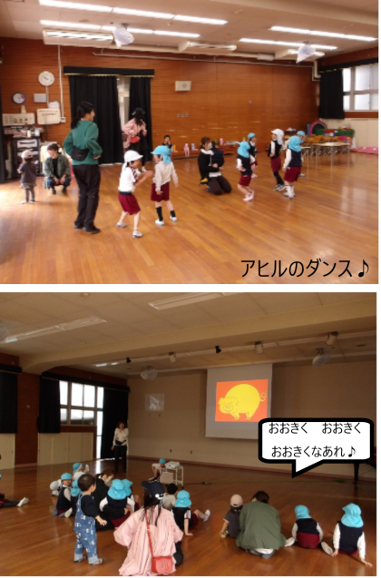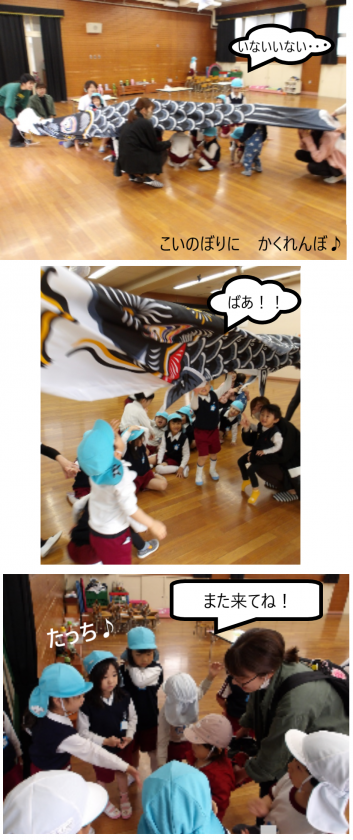 園庭で遊んだり、ダンスをしたり、こいのぼりでかくれんぼをしたり・・・たくさん一緒に遊ぶことができました。