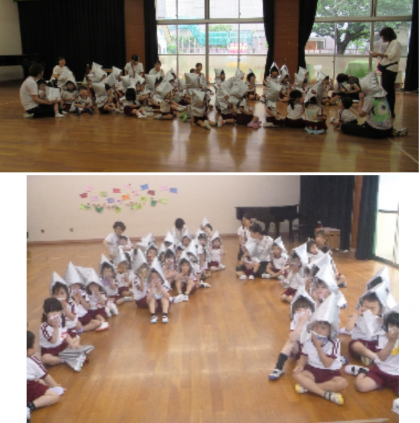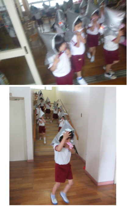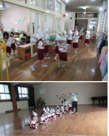 避難訓練をしました 公開日 2025/05/22 更新日 2025/05/22 記事 今日は、火災を想定して避難訓練をしました。 3歳児は初めての避難訓練でしたが、防災頭巾をかぶって、先生と一緒に遊戯室へ避難することができました。 4歳児・5歳児も、避難の放送をよく聞いて、ハンカチで口をおさえながら、慌てず避難することができました。 いいね(0)