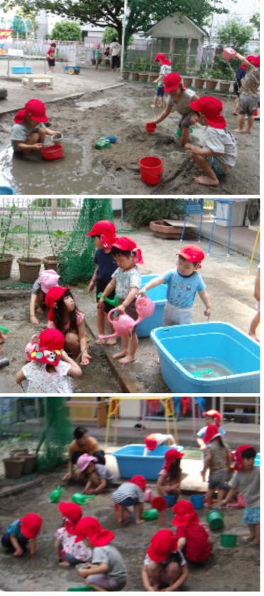 子どもたちは、水で濡れるのも、どろんこで汚れるのも、全部楽しい!!