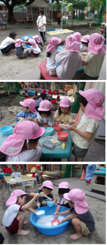 今日もみんなで泡あそびやどろんこ遊びをしました。