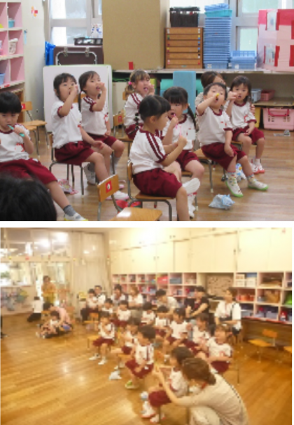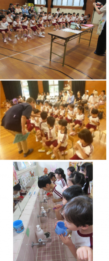 歯磨き指導がありました 公開日 2025/06/19 更新日 2025/06/19 記事 今日は、園医さんと歯科衛生士さんが来て、歯磨き指導をしてくださいました。 虫歯にならないための約束や、ハブラシを細かく動かす“アリさん磨き”を教えていただきました。 お弁当の後、しっかりと歯磨き・うがいをしていた子どもたち。 虫歯にならないために!!お家でも、幼稚園でも、毎日歯磨きを続けていきましょうね! いいね(0)