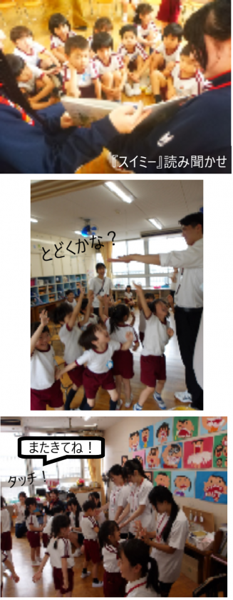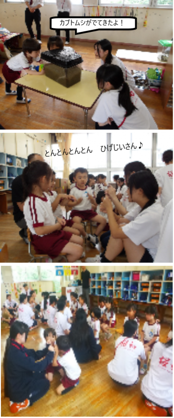 また来てね!(5歳児) 公開日 2025/06/24 更新日 2025/06/24 記事 今日は、桜和高校の方が教育体験実習に来られ、一緒に遊んだり、絵本を読んだりしてもらいました。 短い時間でしたがとても楽しかったようで、「また来てね!」と何度も学生さんたちとタッチしていました。 いいね(0)