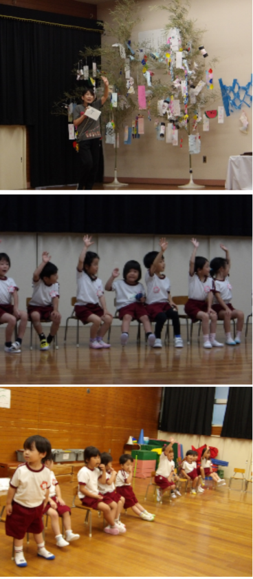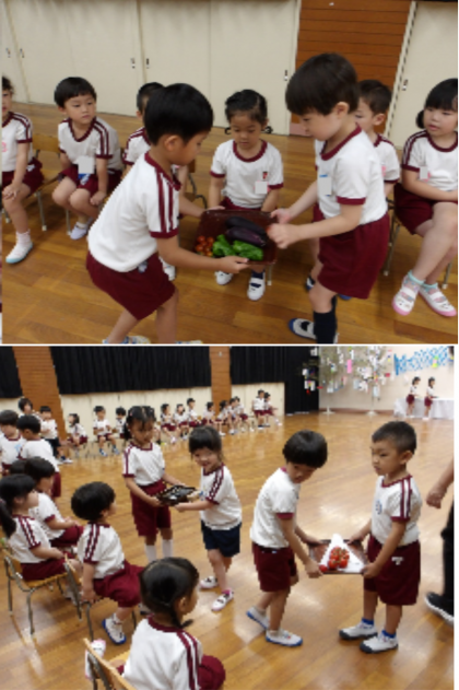 七夕のつどい 公開日 2025/07/07 更新日 2025/07/07 記事 今日は、7月7日七夕です。 みんなで遊戯室に集まって、笹飾りを見たり、『たなばたさま』の歌を歌ったりしました。 そら組さんが園庭で収穫した夏野菜もみんなで見ましたよ。 実りの多い一年になるといいですね。 今日は星空がきれいに見えるでしょうか? みんなのお願い事が叶いますように☆彡 いいね(0)