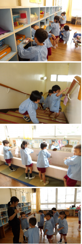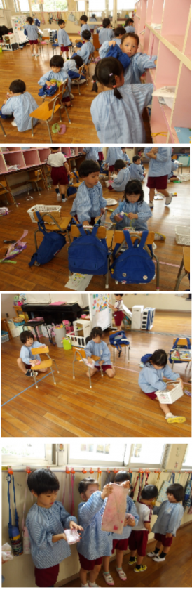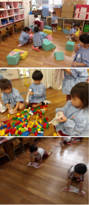 大掃除をしました 公開日 2025/07/16 更新日 2025/07/16 記事 いよいよ1学期が終わります。 今日は、みんなで大掃除をしました。 毎日遊んだ遊具を丁寧に拭いたり、自分のロッカーを整理したり、保育室や廊下を拭き掃除したり・・・「こっち汚れてる!」「ここも拭こう!!」と、いろいろなところをキレイにしてくれていました。 「見て見て!」「こんなに汚れてる♪」と掃除後の雑巾を見て、満足気な子どもたちでした(^^♪ いいね(0)