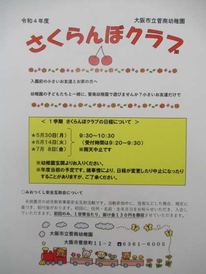 さくらんぼクラブ(未就園児園庭開放)を再開します
