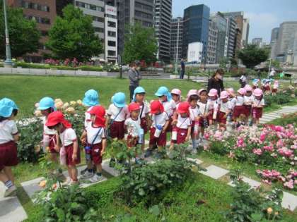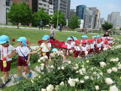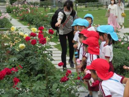 交通ルールに気を付けながら歩いたり、バラの花を見たりして楽しみました。
