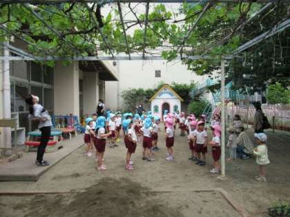 一緒に園庭で遊んだり、体操をしたりしました。