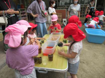 暑い中、泥んこ遊びや水遊びなど、とても気持ちよく遊びました。