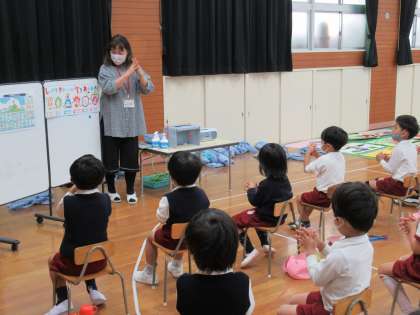 保健の先生(養護教諭)による、手洗い指導を行いました。(写真は4歳児)