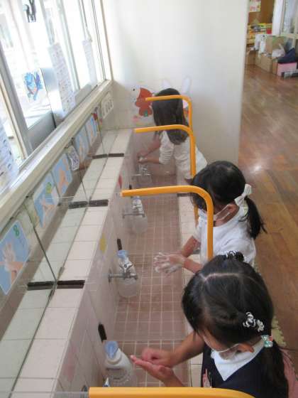手の洗い方も再確認した後、きれいに手を洗っていました。