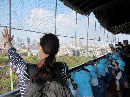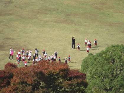 5歳児が大阪城にのぼると、西の丸庭園で遊んでいる4歳児・3歳児が見えました。
