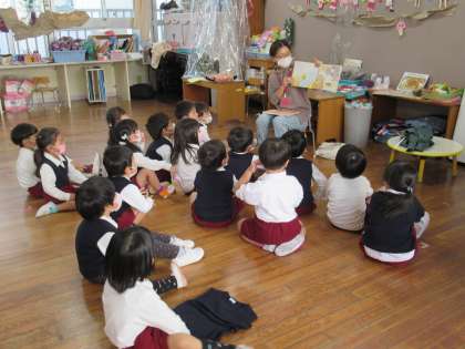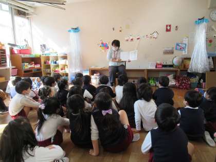 在園児の保護者の方が“絵本ボランティア”さんとして、子どもたちに絵本の読み聞かせをしてくださいました。
