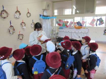 赤い封筒に入ったお手紙の差出人は、なんとサンタさん!ビックリするやら嬉しいやらで、すぐに、他のクラスのみんなにも知らせて、手紙を読みました。そして、16日にサンタさんが来てくれることを知ると、さらに大盛り上がりな子どもたち。「サンタさんはどこから来るのかなぁ?」「好きな食べ物は何かなぁ?」「プレゼント忘れてきたらどうしよう!?」と、サンタさんに会えるのをとても楽しみにしています。