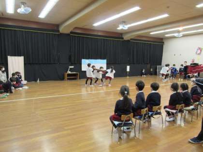 来週、保護者の方に披露する生活発表会がありますが、その前に、子どもたち同士で生活発表会ごっこをしました。