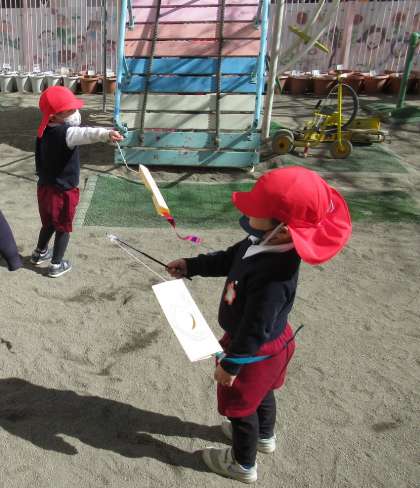 「(ぼくが)止まってるのに(凧が)動いてる…」と、クルクル回る凧を不思議そうにじっと見ている姿もかわいかったです。